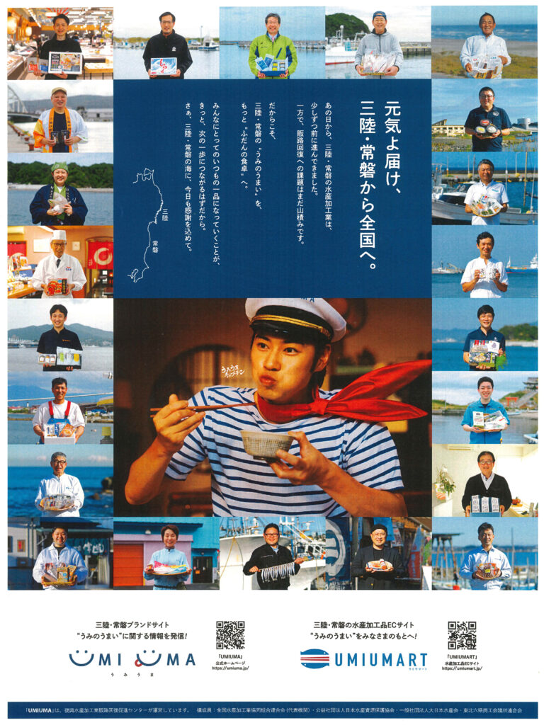復興水産加工業販路回復促進センターが運営し、東日本大震災で被災した三陸・常磐地域の水産加工業の復興を支援するため、同地域の「うみのうまいもの」を全国に届けるブランドサイト・プロジェクトです。
